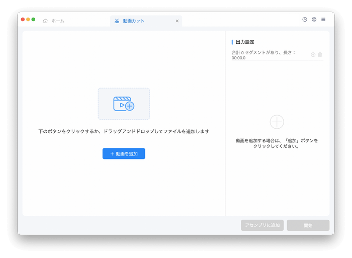 ドラッグ&ドロップしてファイルを追加するか、中央にある「+動画を追加」をクリックして変換したい動画ファイルを選択します。最初の動画ファイルを追加した後、上部の「追加」をクリックしてさらに追加することができます。